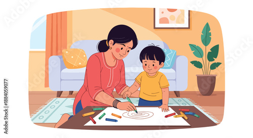 Woman works with laptop in home office. Business concept illustration. Vector web site design template. Open laptop and coffee on a desk.