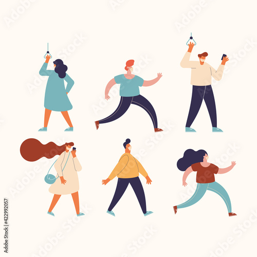 Girls playing rugby football sport game on field, vector flat illustration. Women rugby competition, championship, training concept for poster, banner etc.