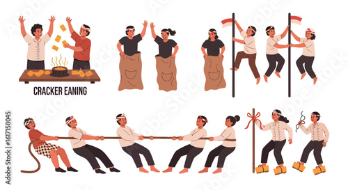Women's lacrosse team vector posters set. Female lacrosse game players celebrating victory on a field. Lacrosse equipment, stick, ball, uniform.