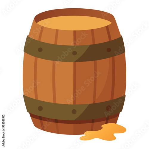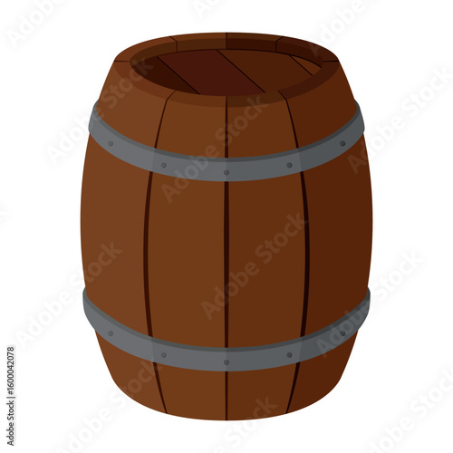 Wooden barrel vector. Beer cask or wine keg, rum or whiskey oak vintage storage tank flat isolated on white background. Wood container for alcohol beverage or gunpowder illustration