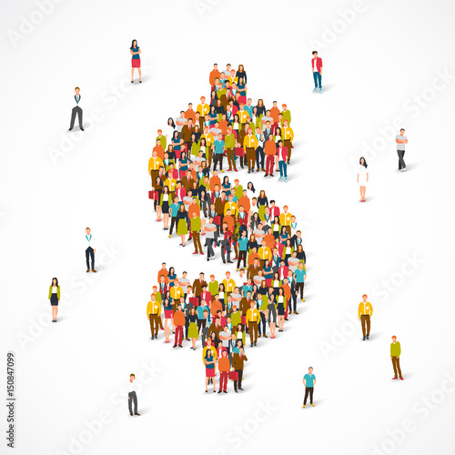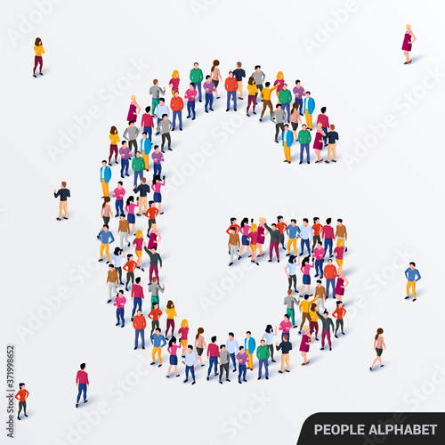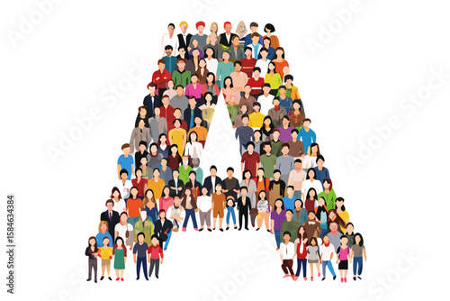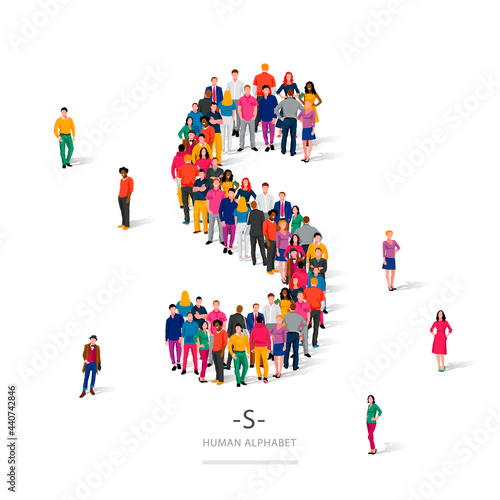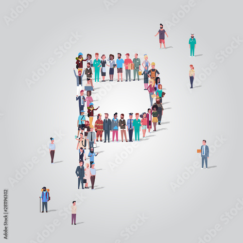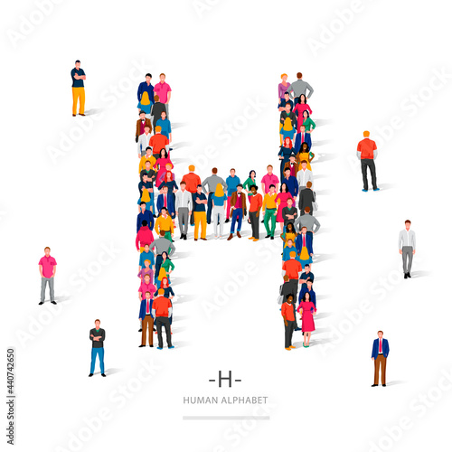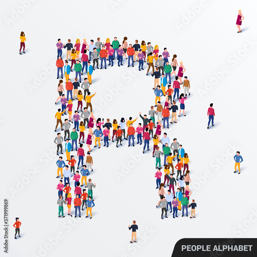 Word No made of many people, large crowd shape. Group of people stay in No sign formation. Social activity, collective action and public engagement. Vector illustration in isometric style.