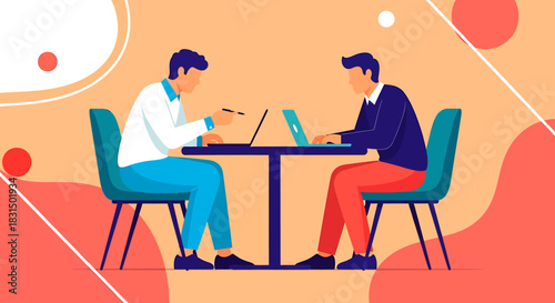 Work conflict flat vector. Cartoon angry coworkers throwing paper document into executive manager sitting at table illustration. Aggressive quarrel, disagreement confrontation of business colleagues