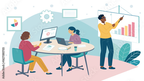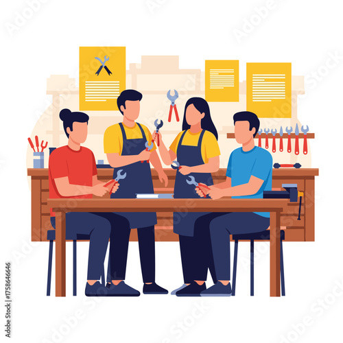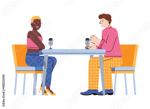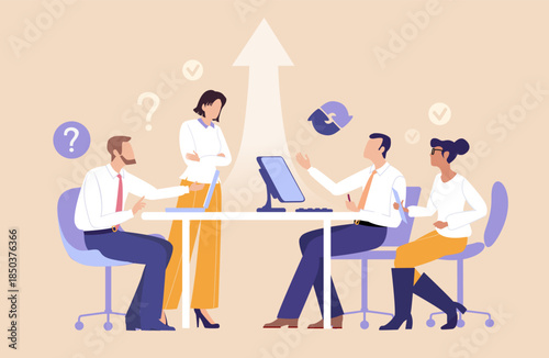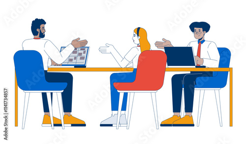 Work conflict vector. Arguing coworkers characters sitting at table and having aggressive quarrel illustration. Confrontation of business partners, toxic relationship in team