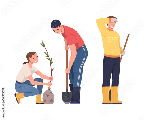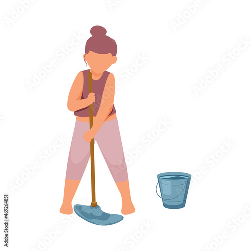Workman builder in uniform mixing cement vector illustration isolated on white background. Construction worker using mixer to make tile mix. Tiling master at work concept