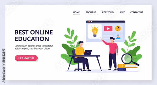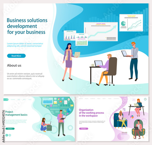 Workspace vector website template, web page and landing page design for website and mobile site development. Software developers workstation concept with characters working and taking rest.