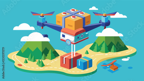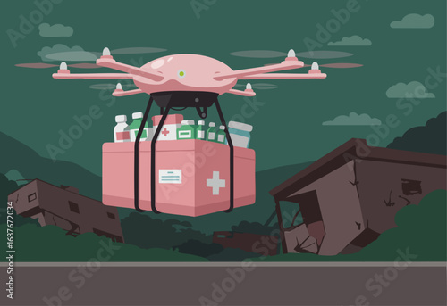 Worldwide delivery concept vector illustration. Globe with map marker and drone with parcel. Flat style design element for website template, poster, banner etc.