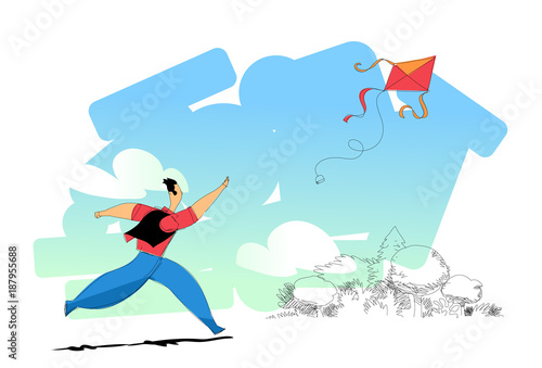 Huge man holding luxury yacht with woman sitting on it and drinking champagne, vector illustration. Summertime vacation, boat trip concept for web banner, website page etc.