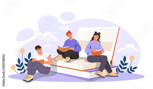 Happy male and female characters taking boat trip, vector illustration. Young people jumping in water, sunbathing on deck and drinking champagne. Yacht travel, summer vacation, sea cruise concept.