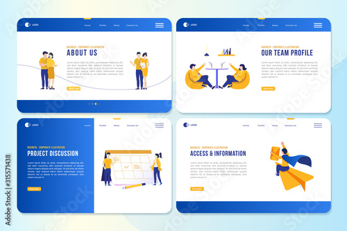 Yard sale vector web banner template set. People sellers and buyers cartoon characters selling and choosing clothes and other used goods. Garage, tag or moving sale concept.