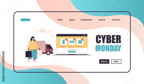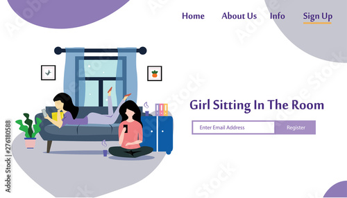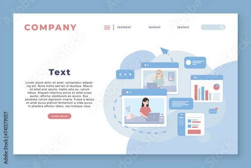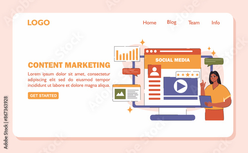 Yoga blogger landing page design, website banner template set, flat vector illustration. Woman trainer vlogger recording yoga class video with smartphone camera on tripod. Blog or live broadcasting.