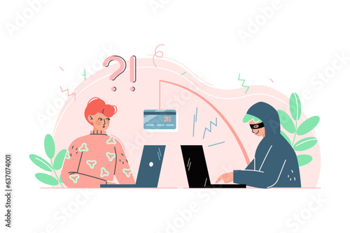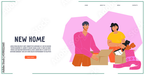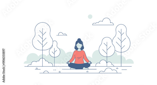 Young couple meditating in yoga position, vector illustration. Yoga camp in nature concept for web banner, website page etc.