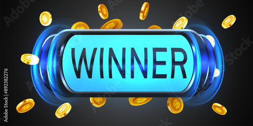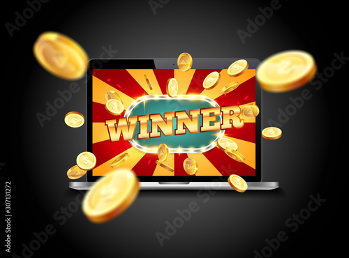 You win casino vector poster banner design template. Smart phone with dollar coins. Mobile gambling winner concept.