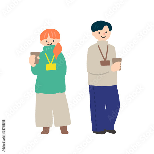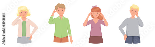 Young adult teenage students cartoon characters wearing casual attire standing isolated on white background. Set of male and female teenagers with different studying accessories