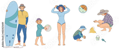 Interracial couple embracing flat vector set. Young man and woman loving each other illustration. Happy multinational family with children isolated on white background