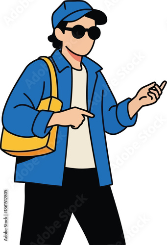 Young male student gesturing stop and rejection vector icon isolated on white background
