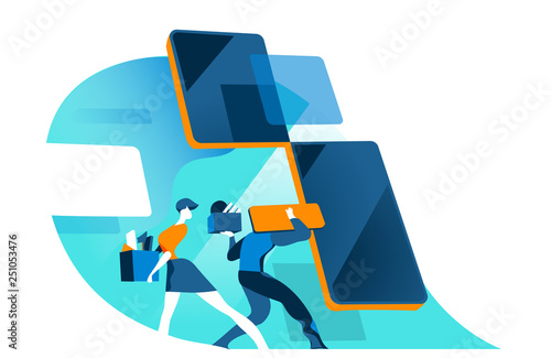 Young man in VR headset, gamer driving race car, flat vector illustration. VR games, simulation. Virtual reality technology and entertainment.