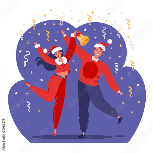 Young man in VR headset flying in outer space, flat vector illustration. Space VR game, simulation, education. Virtual reality technology and entertainment.