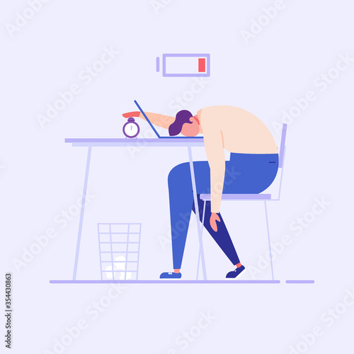 Young tired woman office worker character asking for help vector icon isolated on white background.