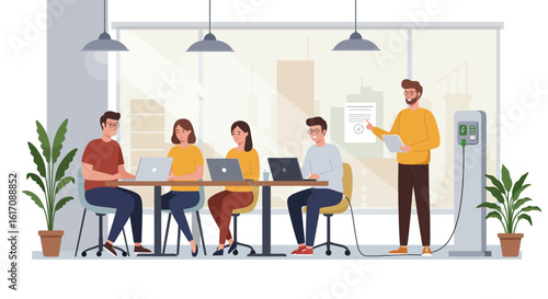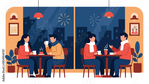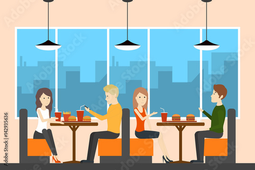 Young woman buying coffee to go in cafe, flat vector illustration. Daily morning routine, everyday life, daily habits.