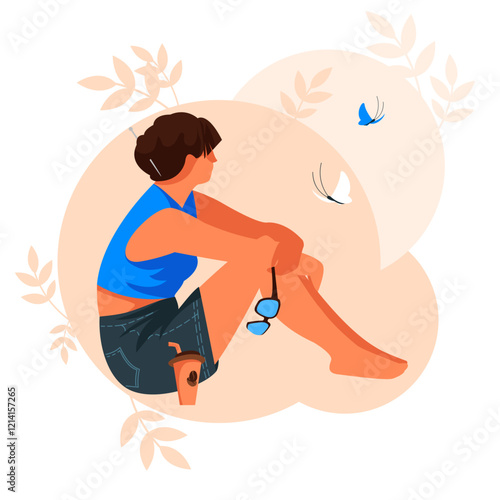 Young woman character in towel and bathrobe bodycare applying cream vector icon isolated on white background.