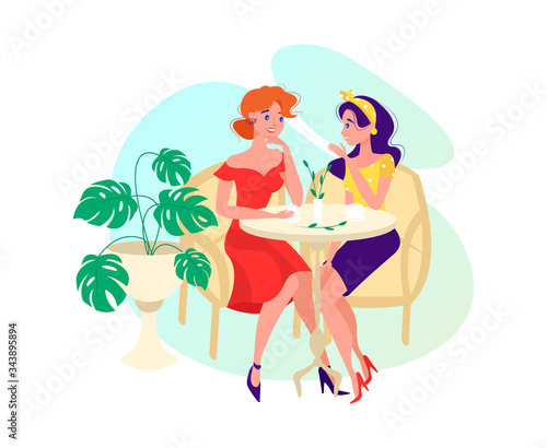 Young woman sitting on chair with book on knees and dreaming about money, flat vector illustration. Dreamy girl thinking about wealth.
