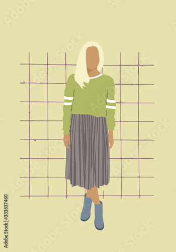 Young woman gesturing rejection with stopping hand vector icon isolated on white background