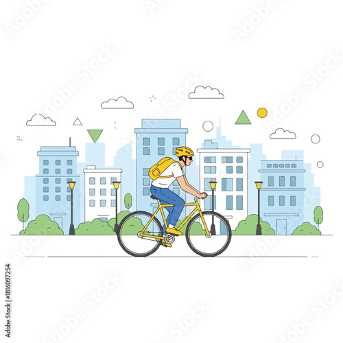 Young woman in wheelchair ride on street vector illustration. Barriers-free environment for physically challenged people. Well-equipped park area background for human with special needs