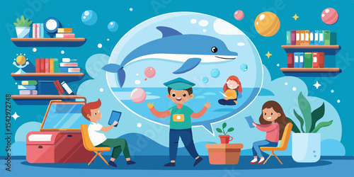 Young woman play with dog at home. Girl reading book in dark room with lamp light. Stay home concept illustration. Vector web site design template. Landing page website illustration.