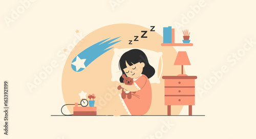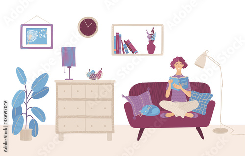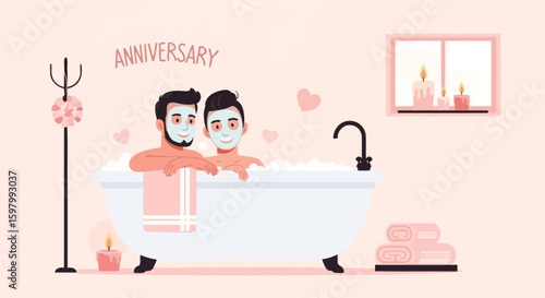 Young woman relaxing in bath at home after hard working day vector illustration. Scene of female character lying in bathtub
