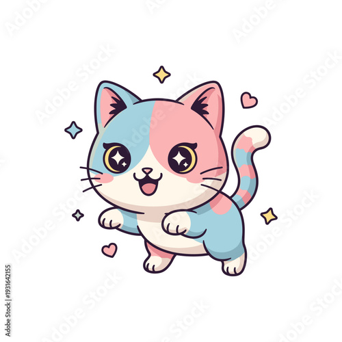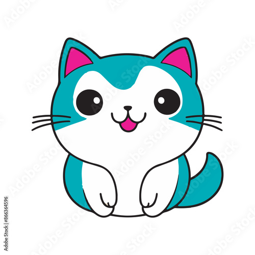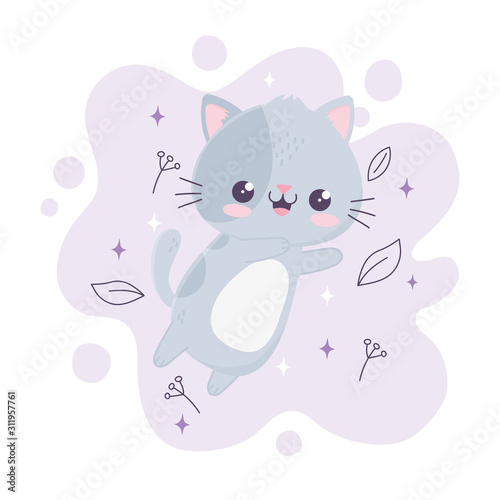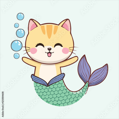 Zodiac cat Pisces vector cute horoscope icon. Funny astrology pet calendar cartoon design. Doodle zodiacal kitten animal month symbol sitting on aquarium illustration isolated on white background