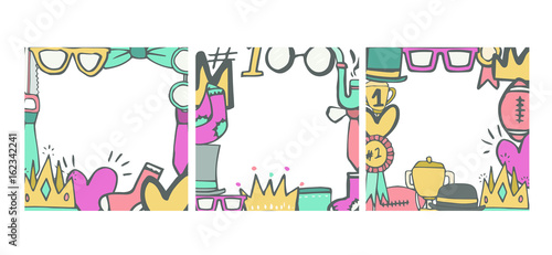 Zoo web banner template set. Vector flat illustration. Zoo signage with exotic, woodland animals. Visitors adults with kids. Happy family feeding carrots to baby giraffe.